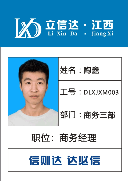 姓名:陶鑫 工號(hào):DLXJXM003 部門:江西三部 職位:商務(wù)經(jīng)理