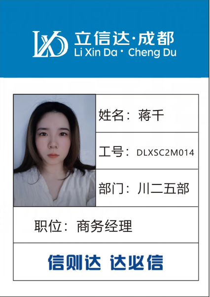 姓名:蔣千 工號(hào):DLXSC2M014 部門(mén):川二五部 職位:商務(wù)經(jīng)理
