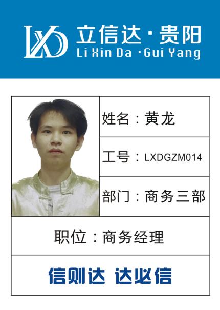 姓名:黃龍 工號:LXDGZM014 部門:貴一三部 職位:商務(wù)經(jīng)理