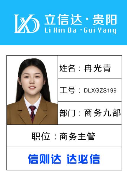 姓名:冉光青 工號(hào):DLXGZC022 部門:貴二九部 職位:商務(wù)主管