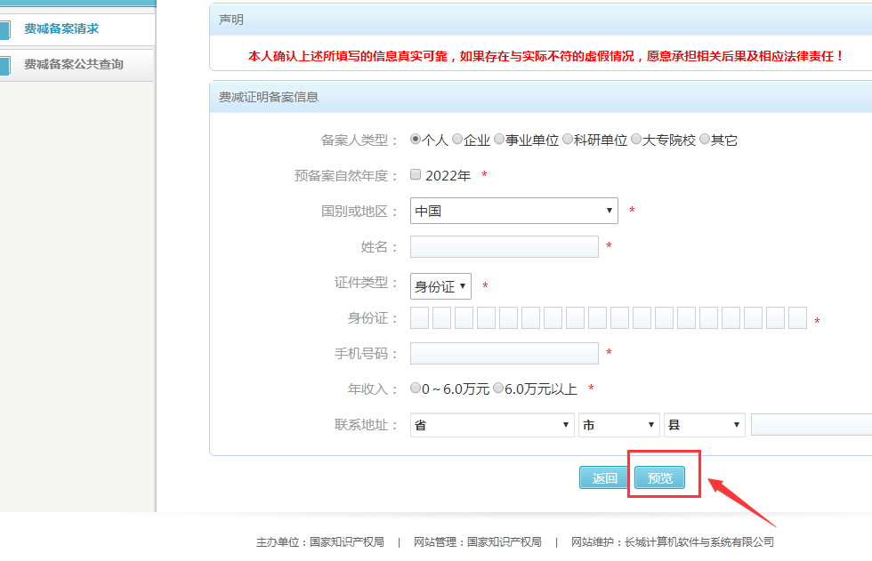 (5)填寫好相關(guān)備案信息,點(diǎn)擊“預(yù)覽”