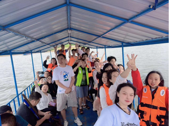 到了地方之后,開(kāi)始了安營(yíng)扎寨,過(guò)程雖有波瀾,但好在大大小小的帳篷都拔地而起,熱鬧過(guò)后看到了停靠在岸邊的船只,大家又不約而同的決定乘船。山里長(zhǎng)大的孩子總是對(duì)水情有獨(dú)鐘,等了一會(huì),船終于開(kāi)了,風(fēng)很大,卻吹不走美妙的景色,吹不走我們的熱情。