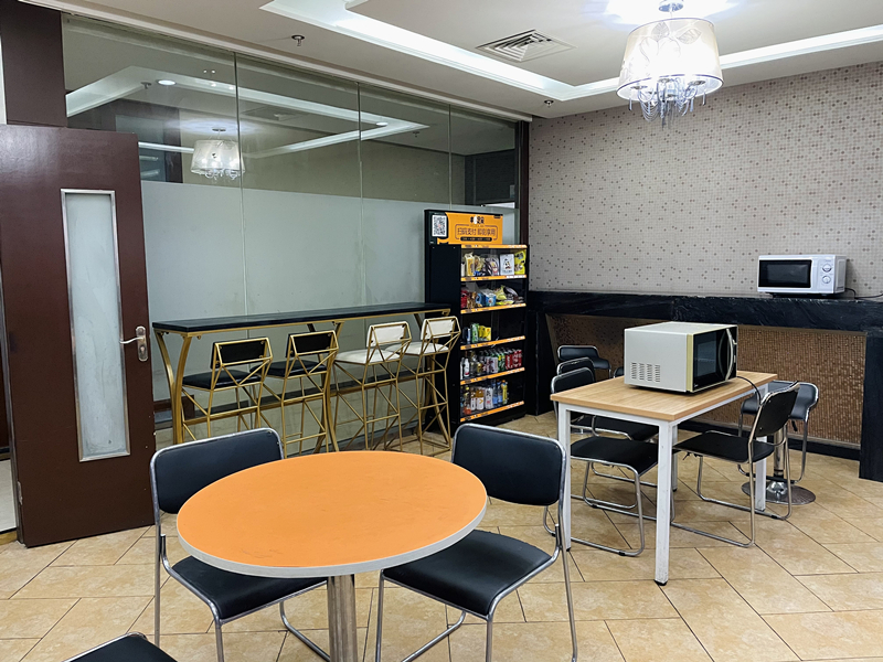 以上就是半個(gè)圈的辦公布局。接下來再次回到前臺(tái)視角,向右走,就是我司的會(huì)議區(qū)、培訓(xùn)室、面試區(qū)、會(huì)客區(qū)、茶水間等。